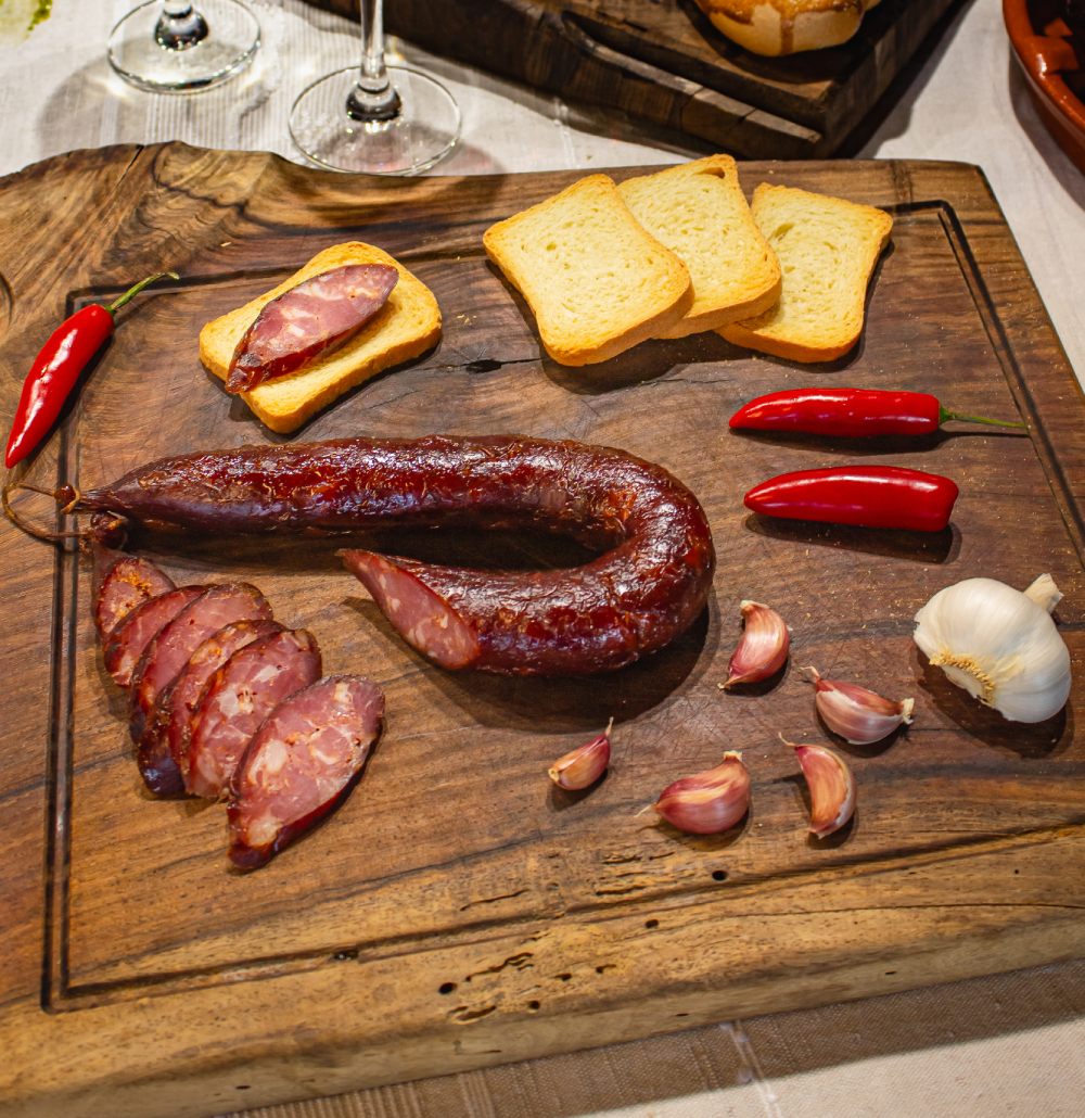 Clássico dos enchidos portugueses, com temperos tradicionais e sabor marcante.